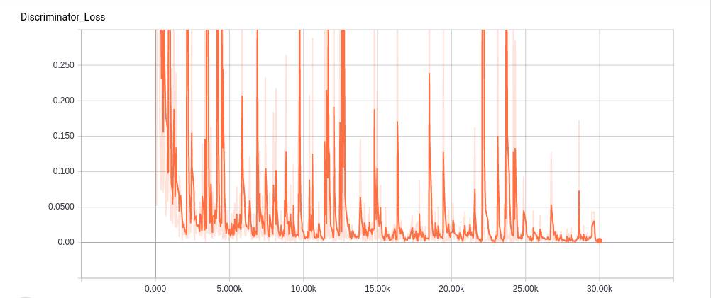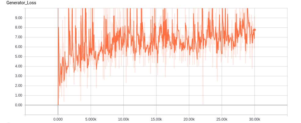 从这些图可以看出,在训练阶段,鉴别器和生成器损耗在不断增加,表明生成器和鉴别器都试图相互执行。