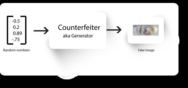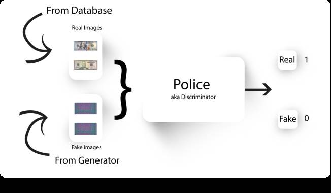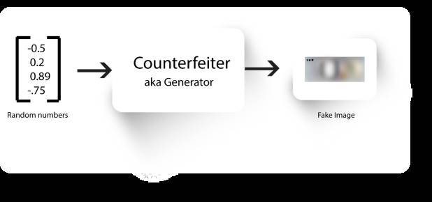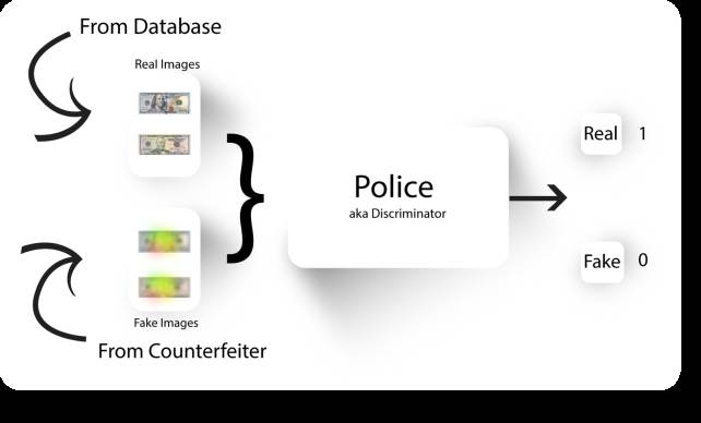 伪造者现在已经知道它的图像已被归类为“假”,而警察正在寻找货币所具有的一些独特的特征(如颜色和图案)。伪造者现在在学习这些特征,并生成具有这些特征的图像。