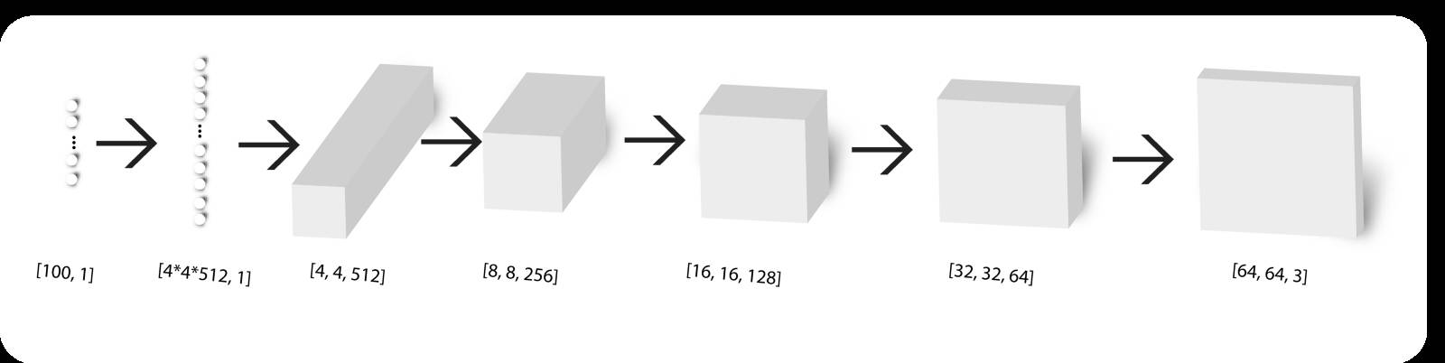 接下来,我们用一个生成器架构,它由conv_transpose层组成,它们将一组随机数作为输入,并在输出端生成一个图像。