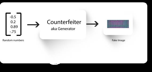 我们可以把生成器比作一个伪造者,而把鉴别器视作一个警察,他必须从两枚货币中区分真假。在最开始的时候,我们要确保伪造货币的伪造者和警察都是同样不擅长他们的工作的。因此,伪造者首先生成一些随机的噪声图像。