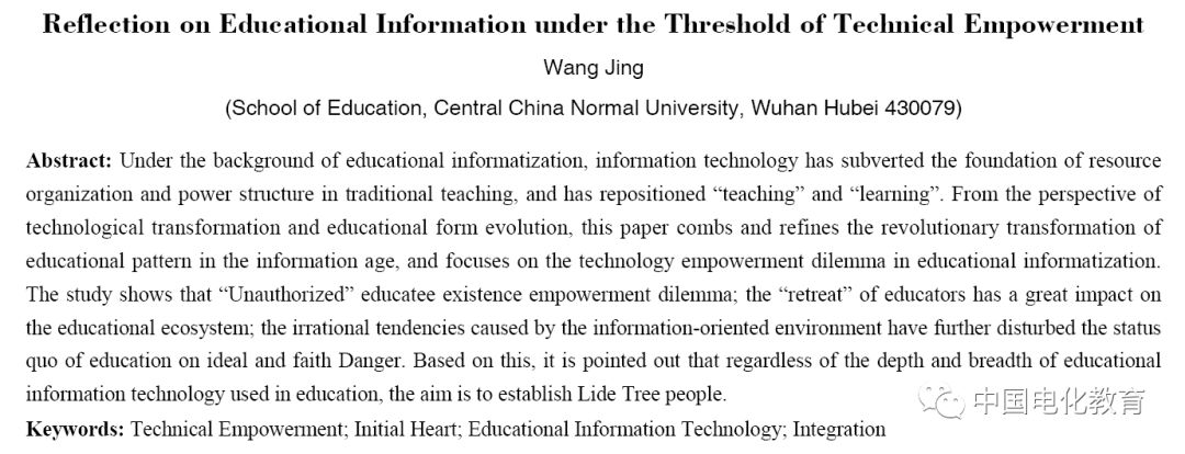 教育信息化背景下,信息技术颠覆了传统教学中资源组织与权力架构的基础,对“教”与“学”惊醒了重新定位。文章从技术变革与教育形态演变的视角,处理和提炼了信息化时代教育格局发生的革命性变革,并对接教育新华中的技术赋权困境进行了着重探讨。研究认为,“无权”受教育者存在增权困境;教育者的“隐退”对教育生态体系产生了极大的影响;信息化环境所导致的非理性倾向,有进一步干扰理想信念教育现状的危险。该文章在此基础上指出,无论教育信息技术再教育过程中运用到如何深度和广度,其目的都是为了立德树人。