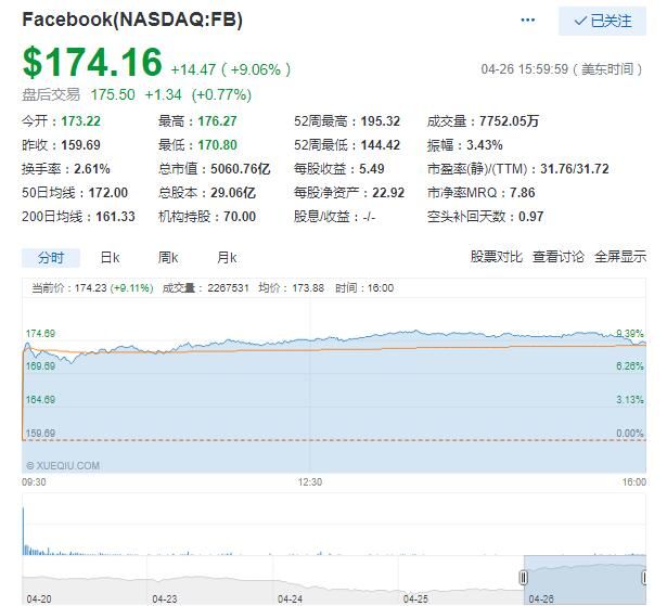 27日Facebook大涨9%