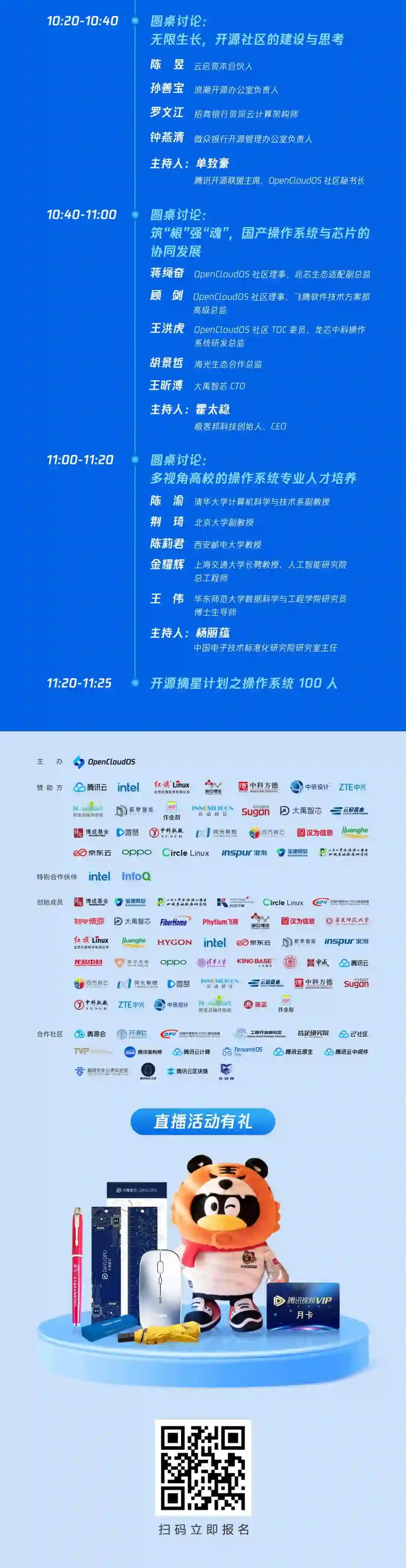 本次活动特设三大圆桌,举行超级对话。圆桌聚焦开源和操作系统,分别以开源社区建设、开源生态构建和人才培养为主题,邀请到互联网、金融和教育行业以及芯片行业的专业人士,展开深入交流和讨论,用多种视角,深度观察,为你带来一场思想盛宴!