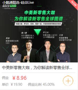 课程特色:四位新零售大咖线上直播,深入解读新零售,打开创业新领域。