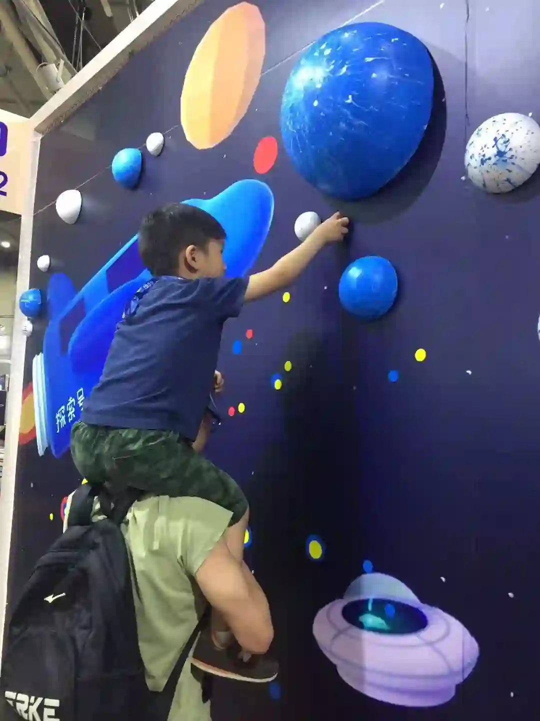 迎合星际探索者们来到良狮子“探索号”太空舱互动站,良狮子“探索号”太空舱互动站采用了良狮子儿童漫画教育课程中的一个互动模式,将展位打造成一个宇宙背景的空间,小朋友可发挥想象力和色彩搭配能力,将不同颜色的圆形贴纸和泡沫球自行搭配贴满整个宇宙背景,创造出充满想象力和艺术感的宇宙空间。