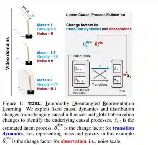 近年来,在无监督表示学习领域中,除了独立性之外,还通过利用类标签等侧面信息建立了因果相关潜变量解纠缠的强可识别性结果。然而,大多数现有的工作都受到函数形式假设(如独立源或进一步的线性过渡)和分布假设(如平稳、指数家族分布)的限制。如果潜在的潜在变量之间有任意的、非参数的因果影响,那么它们和它们的因果关系是否可识别是未知的。在这项研究中,我们从固定时间因果影响下的非线性混合中建立了非参数潜在因果过程的可识别性理论,并分析了分布变化如何进一步有利于解纠缠。我们提出了TDRL,这是一个原则性的框架,用于从平稳环境和不同分布位移下的测量序列数据中恢复时滞潜在因果变量并识别它们之间的关系。具体而言,该框架可以将未知分布位移分解为固定时变潜在因果关系下的跃迁分布变化,以及观测中观测变化下的跃迁分布变化。通过实验,我们表明延时的潜在因果影响被可靠地识别出来,我们的方法大大优于现有的基线,这些基线没有正确地利用这种变化的模块化表示。我们的代码可在以下网站获得:https://github.com/weirayao/tdrl。