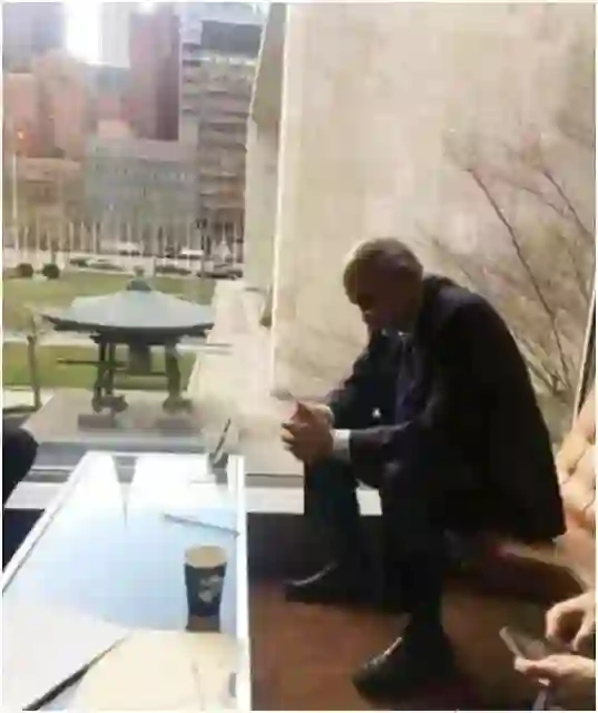他是叙利亚驻联合国代表,他叫贾法里,在他的国家被轰炸、全是焦土的时候,他一个人在联合国向美、英、法三国辩解,三个国家的代表直接离席。