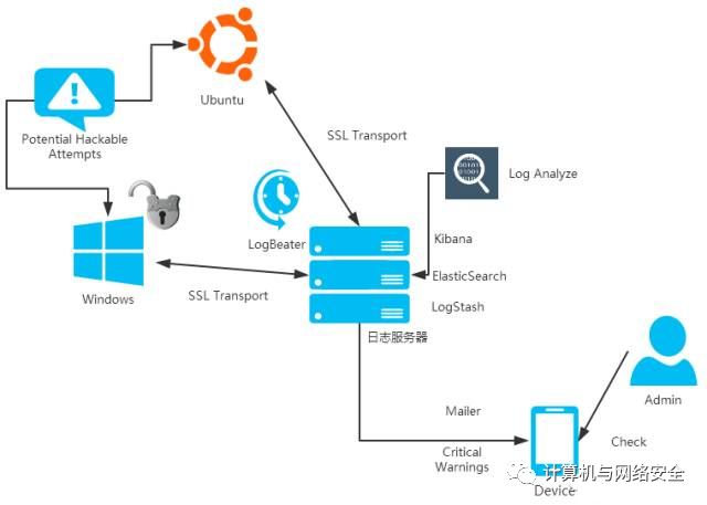 笔者在云上部署了两台机器,一台 WindowsServer、一台 Ubuntu。这两台机器通过 FileBeat 和 WinLogBeat 以及 Samba 服务将各自系统的IO信息传输至一台日志服务器,在日志服务器上部署了ELK栈来保存和处理这些服务器上的 IO 信息和系统日志,随后,我在这些服务器上部署了弱口令、带有漏洞的系统组建和WEB服务,作为高交互的蜜罐系统使用。