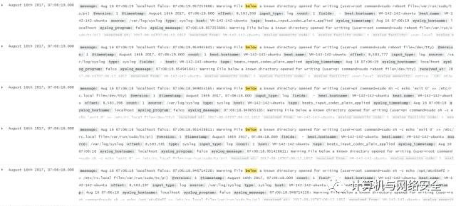 在分析这个攻击脚本后,我针对性地优化了 Falco 的报警规则,在日志系统中成功捕获了一系列类似该脚本在攻击时执行的指令: