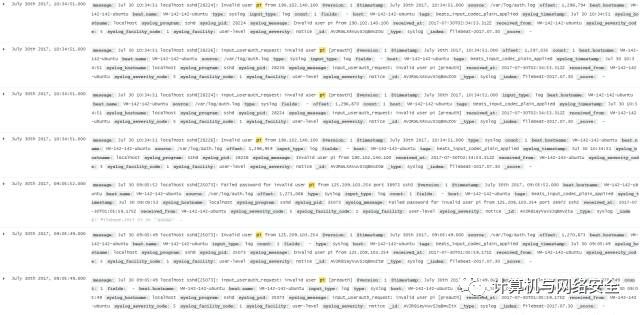 在Linux系统部署后的一段时间里,并没有观察到系统被入侵的痕迹,只是发现了许多扫描记录,这些扫描记录大多指向SSH服务,说明攻击者多数试图以暴力破解的方式攻入系统,于是我仔细查看了一下这些暴力破解的内容: