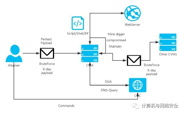 与传统的僵尸网络相比,云端使得攻击传播更为迅速,并且云服务器充足的带宽和数量众多的公网IP是DDOS和比特币、门罗币等矿机的首选目标。