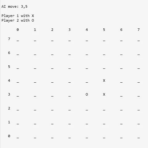 我们先来看两局训练好的 AI 模型(3000 局 self-play 训练得到)对弈的情况,简单感受一下:
