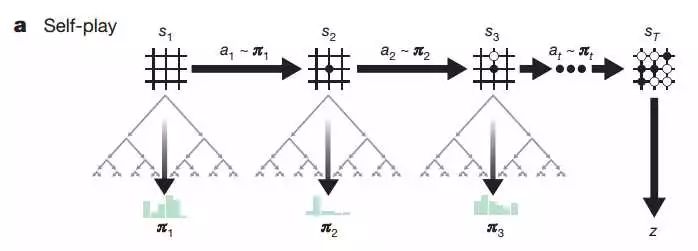 在 AlphaGo Zero 论文中,每一个 self-play 对局的前 30 步,action 是根据正比于 MCTS 根节点处每个分支的访问次数的概率采样得到的(也就是上面 Self-play 示意图中的   ,有点类似于随机策略梯度方法中的探索方式),而之后的 exploration 则是通过直接加上 Dirichlet noise 的方式实现的(