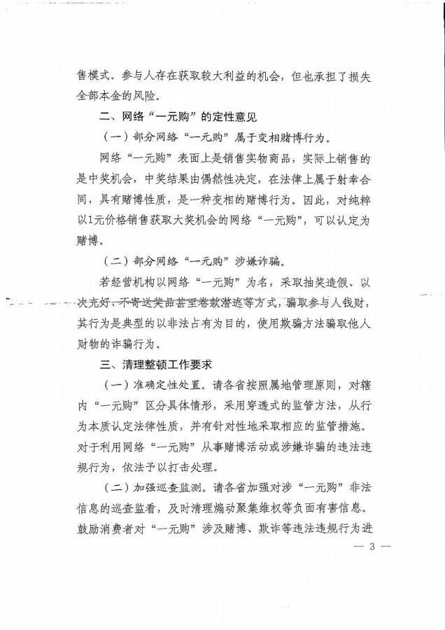 附:《关于网络“一元购”业务的定性和处置意见》全文