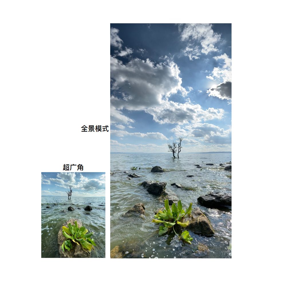 全景模式可以拍摄更广更多的画面但与超广角是不同的,体现在图片比例以及透视,二者无法相互替代。