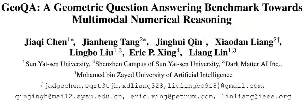 论文3:GeoQA – A Geometric Question Answering Benchmark Towards Multimodal Numerical Reasoning