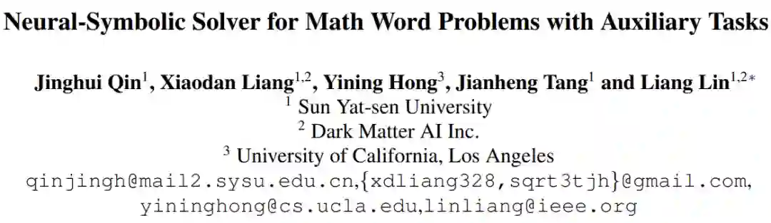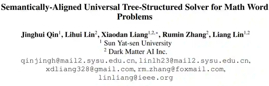 为了探究深度模型对数学题的解题能力,中山大学人机物智能融合实验室在前人研究的基础上以中小学数学应用题和几何计算题为切入点,开展了一系列研究,改进了深度模型的语义理解、认知推理和数学解题能力。本文将对中山大学人机物智能融合实验室在数学解题领域的一系列研究进行简要介绍。