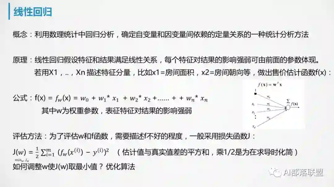 1.1线性回归:通过一条直线来拟合一个因变量Y与多个自变量(x1,x2...xn)的关系Y = a + W * X,自变量和因变量是线性关系。线性回归适用于低纬(自变量别太多), 且每一维之间都没有共线性。