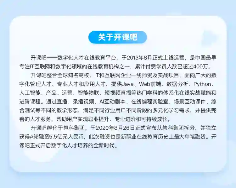 那么,如何掌握基于情感词典分析方法?情感分析中的GPT 系列和 BERT 类模型又是如何使用?别急,今天,给大家推荐一份由 开课吧 提供赞助的《NLP情感分析进阶必备大礼包》资料。
