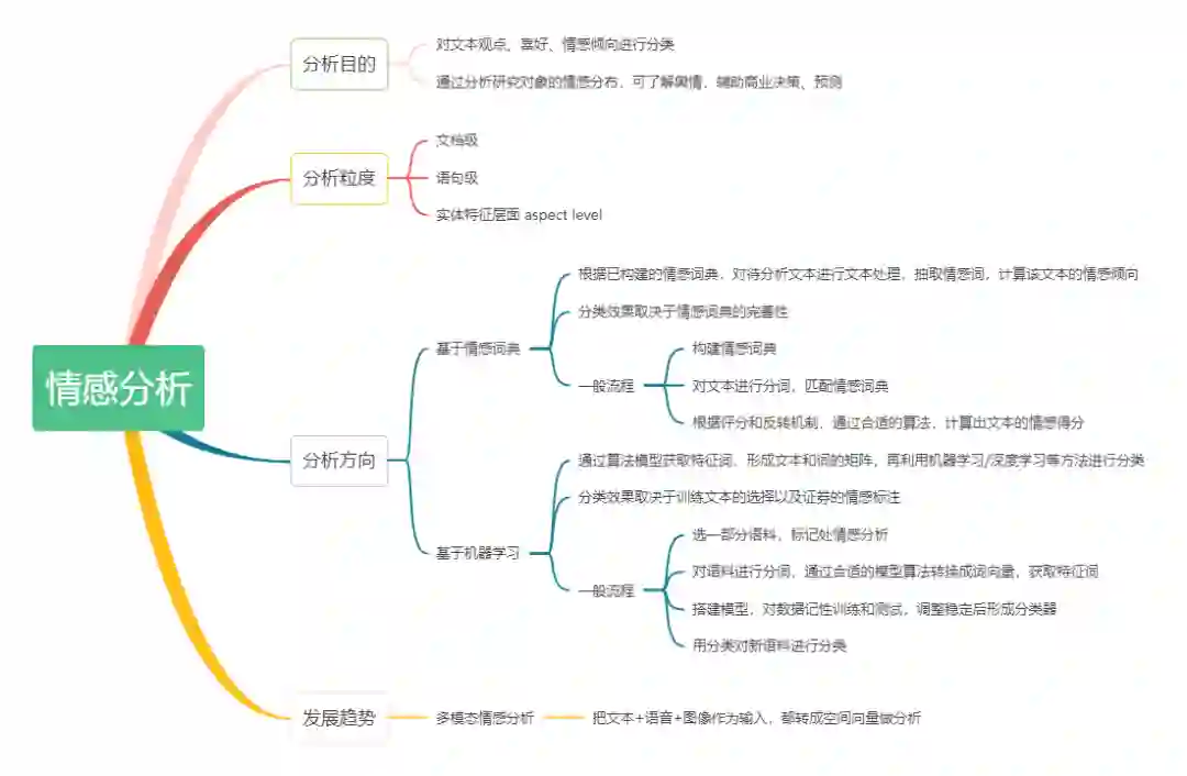 前者需要用到标注好的情感词典;后者则需要大量的人工标注的语料作为训练集,通过提取文本特征,构建分类器来实现情感的分类。
