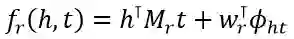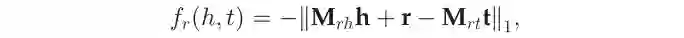 其中M_rh和M_rt是h和t的投影矩阵,为了处理多个类别标签,M_rh表示为所有可能的类型矩阵的加权和,即: