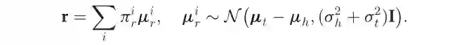 TransG提出使用高斯混合模型描述头、尾实体之间的关系.该模型认为,一个关系会对应多种语义,每种语义用一个高斯分布来刻画,即: