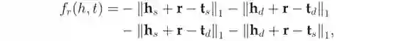 TransF使用了类似的思想。而不是执行严格的翻译h+r≈t,TransF只需要t与h+r位于同一个方向,同时h与t-r也位于同一个方向。则评分函数(即t和h+r匹配,h也要与t-r匹配)如表1所示。
