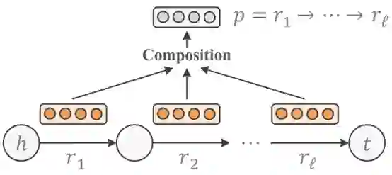 Lin等人提出一种将TransE扩展到对关系路径建模的方法,称为基于路径的TransE (PTransE)。给定连接两个实体h和t的路径p=r_1→r_2→…→r_l,以及组成关系的向量表示r_1,r_2,…r_l,PTransE考虑了三种类型的组合操作,即,