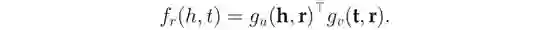 然后将组合向量与关系表示形式匹配,以对事实进行评分,即: