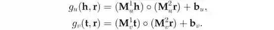 后者对于头实体和尾实体分别使用2个不同的投影矩阵M_r1(theta_r1)和M_r2(theta_r2)。
