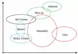 图3为KG2E模型示例,每个圆圈代表不同实体与关系的表示,它们分别与“比尔·克林顿”构成三元组,其中圆圈大小表示的是不同实体或关系的不确定度,可以看到“国籍”的不确定度远远大于其他关系。