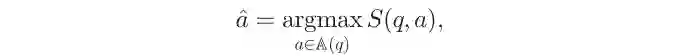 上式中A(q)是候选答案集。Bordes等人经验表明,这种直观的方法实现了较好的的结果,在不使用任何词典,或额外的步骤词性标注规则,语法或依赖项解析在训练最传统的问答系统。