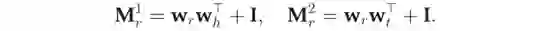 为了解决这些问题,Ji等人提出了TransD模型。给定三元组(h, r, t) , TransD模型设置了2个分别将头实体和尾实体投影到关系空间的投影矩阵Mr1和Mr2。,具体定义如下: