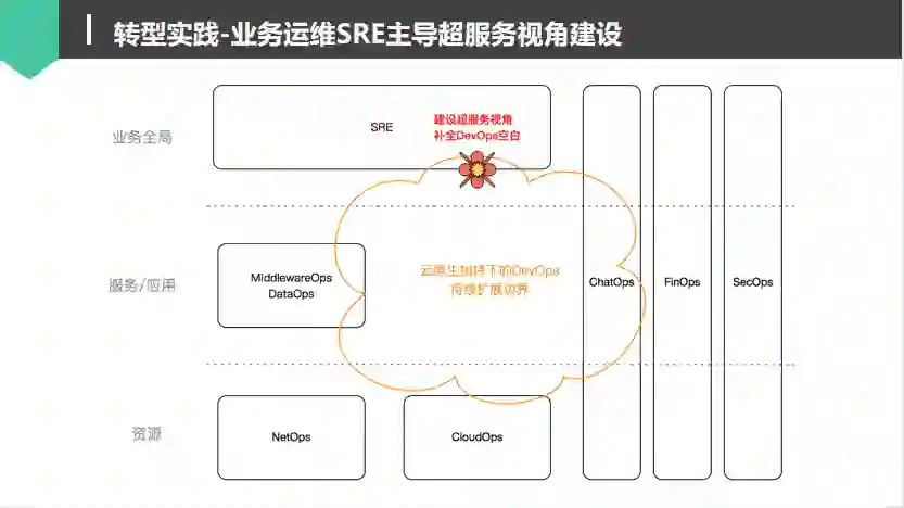 随着后来公有云和云原生的大范围使用,运维职责被压缩的趋势更加明显,这也引发了对运维转型的相关思考。