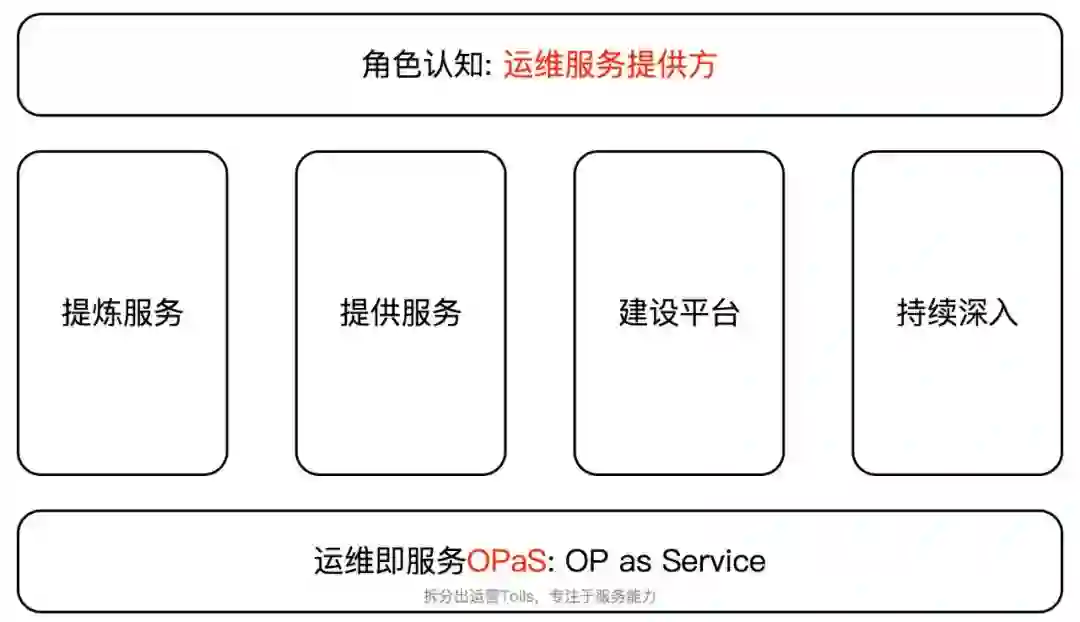 第一层,要改变角色认知。把自己从依附于业务才能产生价值的运营角色,调整为具有独立价值的运维服务提供方。这是转型的关键部分