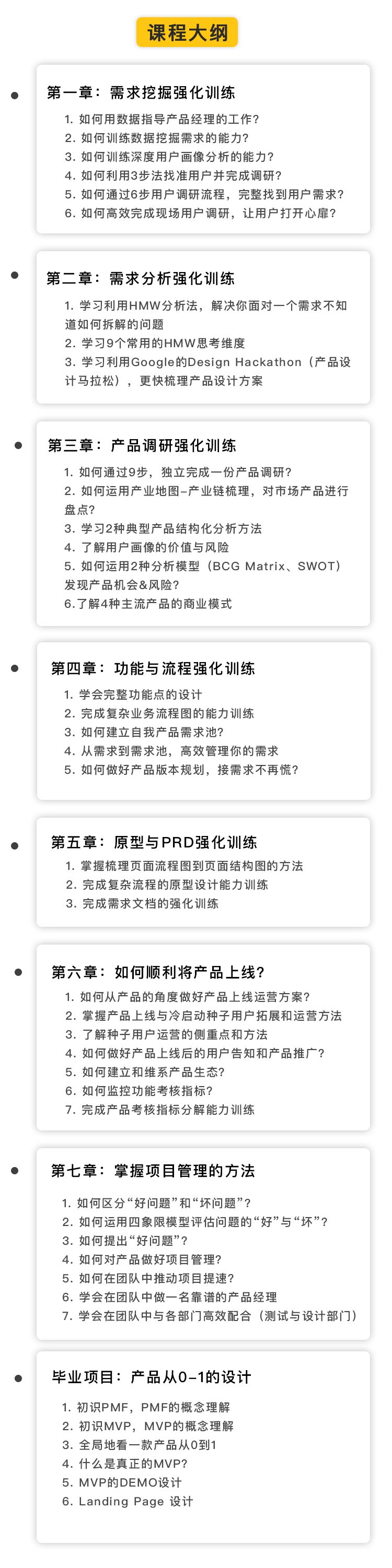 这里就不废话了,直接把课程大纲分享给你,供参考——