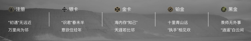 通常会员命名会以金属作为主线,其中金、银、钻石等最为常见。这是用户已经熟知的命名方式,遵循以上规则有助于用户更快的接受会员身份。