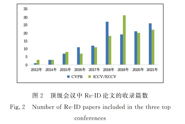 近年来,在各种国际顶级会议中 ReGID 相关研究论文的 收录数量较多,图2统计了2013年以来发表在三大计算机视 觉顶级会议 CVPR,ICCV 以及 ECCV 的论文情况.