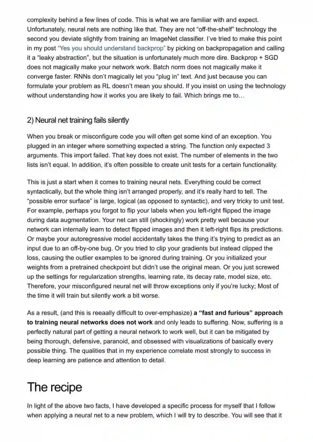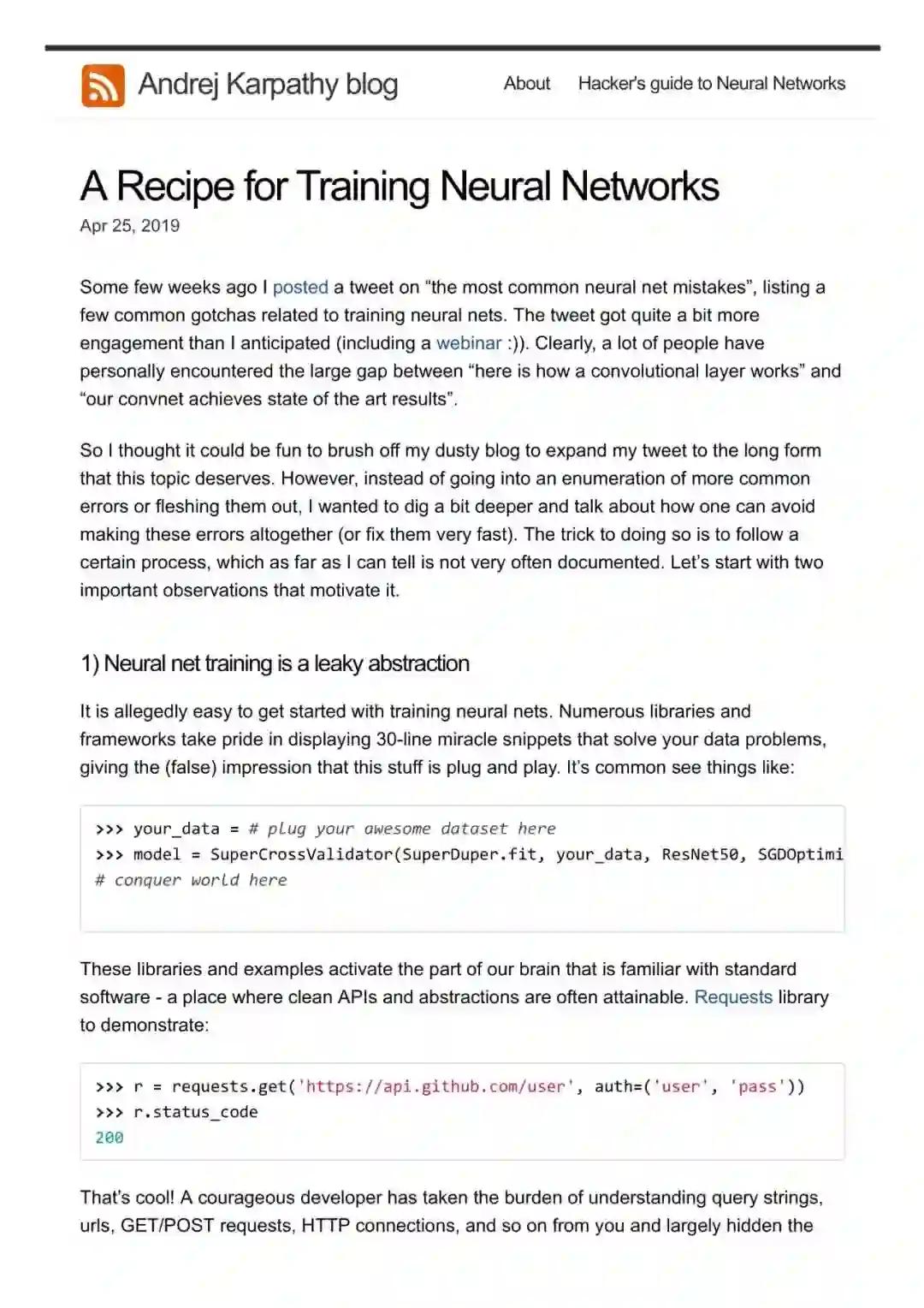 Andrej Karpathy今天发布了博客《A Recipe for Training Neural Networks》: