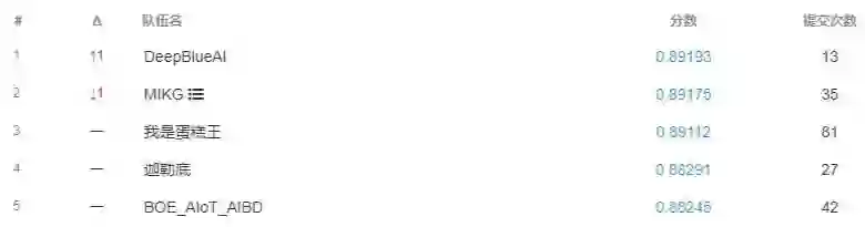 评价方式采用 F-1 分值,在最终榜单上我们 f1 达到了 0.89538 与第一名仅相差0.00002。