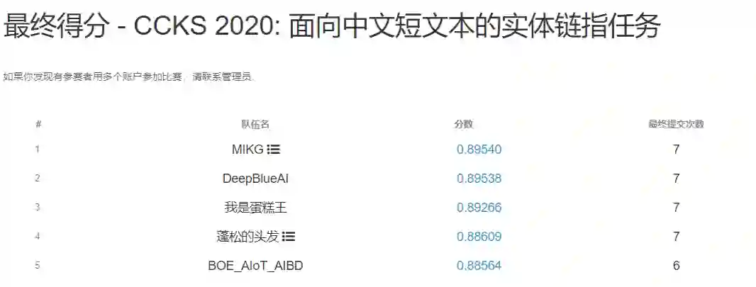 我们在 2020(全国知识图谱与语义计算大会)举办的“面向中文短文本的实体链指”评测任务中取得了 A 榜第一名的成绩,B 榜第二名的成绩,其中基于问答的实体类型判断模型巧妙的利用到了已知实体的信息,此模型对后续此类型的任务提供了借鉴意义。