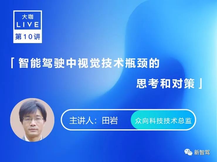 7 月 25 日(星期三)晚上 8 点,【大咖Live】第 10 期视觉感知专场,我们邀请到武汉众向科技技术总监田岩博士,详细解析智能驾驶中的视觉计算问题。照例,本次分享对新智驾年度会员免费开放。