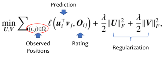 矩阵U的每一行可以看作user embedding向量 ,矩阵V的每一列可以看作item embedding向量;