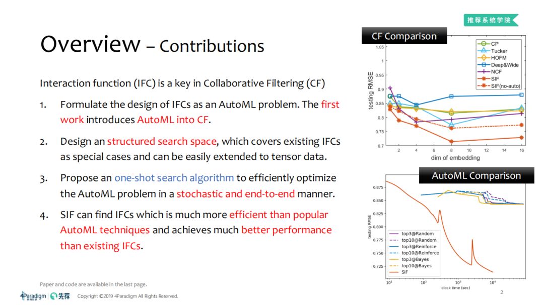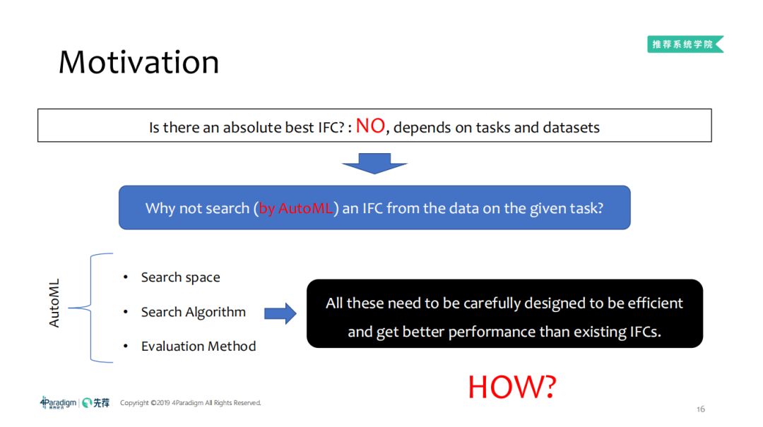 表中H表示训练参数。对于验证集,SIF利用AutoML搜索一个合适的交互函数,其他的则是专家们设计的非常著名的交互函数。在不同的任务及数据集上具有一致性性能好的IFC我们称其为最佳的IFC,那么这样的IFC是否存在?No,因为它依赖于任务及数据集。2. 自动化机器学习AutoML