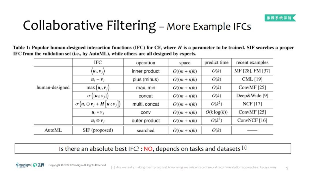 是否存在绝对最优的IFC?答案是否定的。因为协同过滤中,任务与数据集具有多样性。真正想要回答这个问题,就要知道why以及我们为什么要采用这种方式设计。