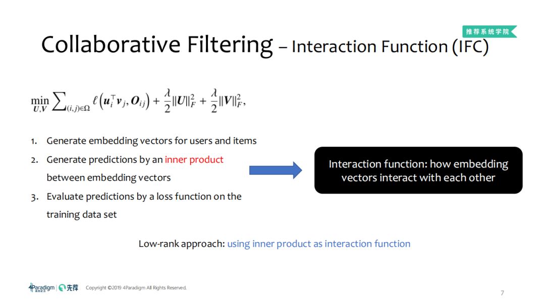 低秩方法:就是采用内积作为交互函数