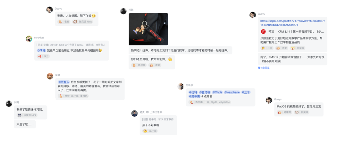 那些拥有庞大结构的组织无法在一个地理位置办公,@Clyde 则也是「少数派异地小分队」的一员。他认为飞书一直以来都是维系和同事的最重要的效率工具之一:基础沟通体验稳定、核心效率功能一个不落,并且一直保持着那份纯粹的工具属性,也尤其喜欢飞书带来的「一体感」。同时,飞书官方对于外部需求也可以快速地沟通、实现。从飞书内测、后来正式推出,再到因为时情特殊完全免费的过程中,很多少数派同事都向飞书反馈过各种各样的问题,这些问题中的大多数都得到了很好的解决。