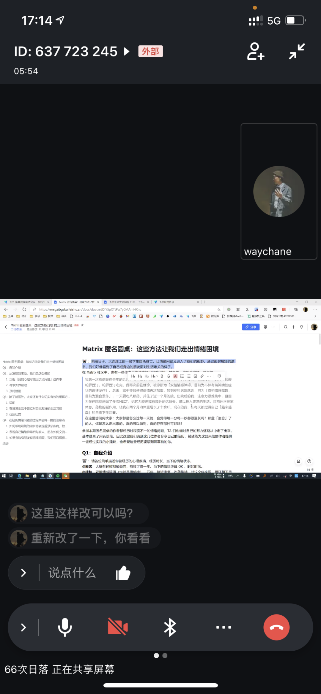以少数派内部的例子来说,我们的编辑有近一半处于国内外远程办公的状态,这就对协作服务的稳定性、恶劣网络环境的优化要求很高。单单视频会议这个模块,内部就尝试过多个国内外的服务,最后只有飞书会议最流畅,也正好与飞书深度结合。飞书会议除了好用的基础功能之外,还可以直接将文档作为屏幕分享的内容、支持会中远程控制,能满足更多特定场景下的需求。与语音交流同样重要的,个人希望飞书会议后续的更新能提高文字信息的醒目程度,使那些无法开麦交流的参会者能更加轻松地参与会议的流程。