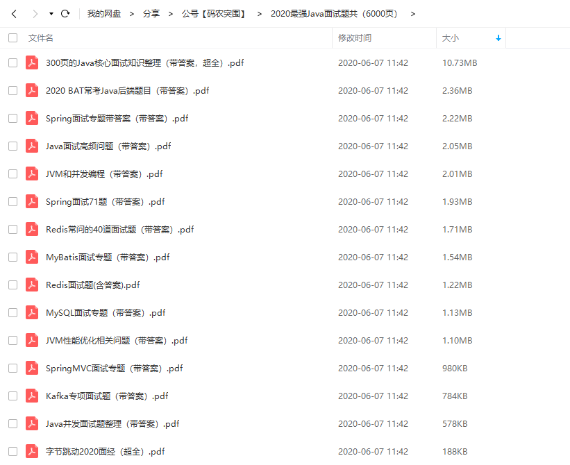 另外,为了回馈广大读者朋友,我特地给大家整理了一份 2020 年全网最新最全的 Java 面试题宝典(含完整目录和答案),部分截图如下(点击图片可拉大):