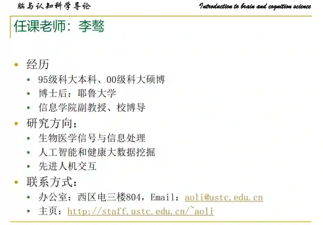 脑认知及其相关的智能科学是人工智能专业的重要基础知识,通过对这门课程的学习,